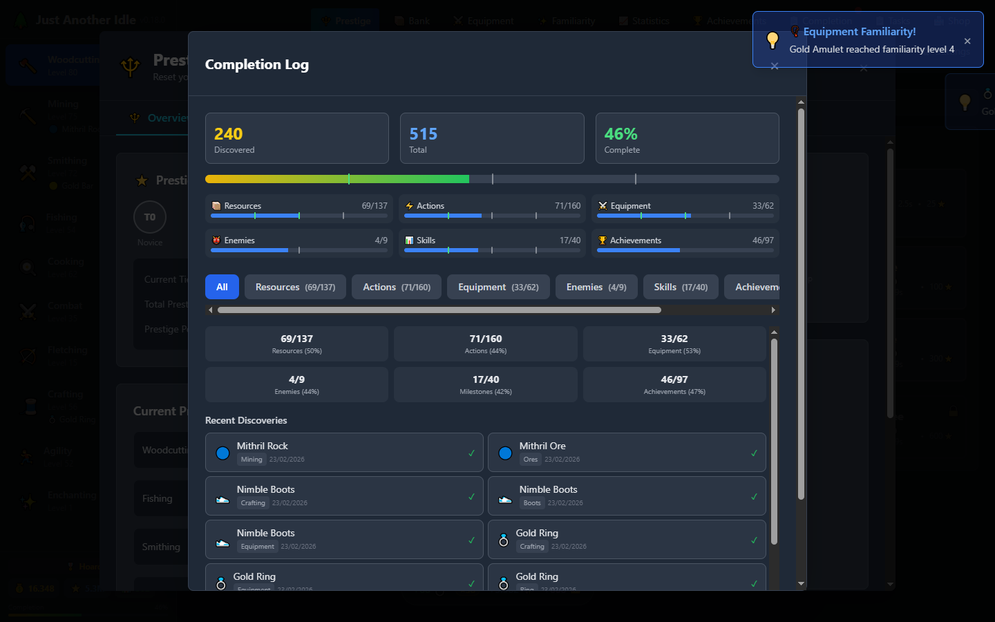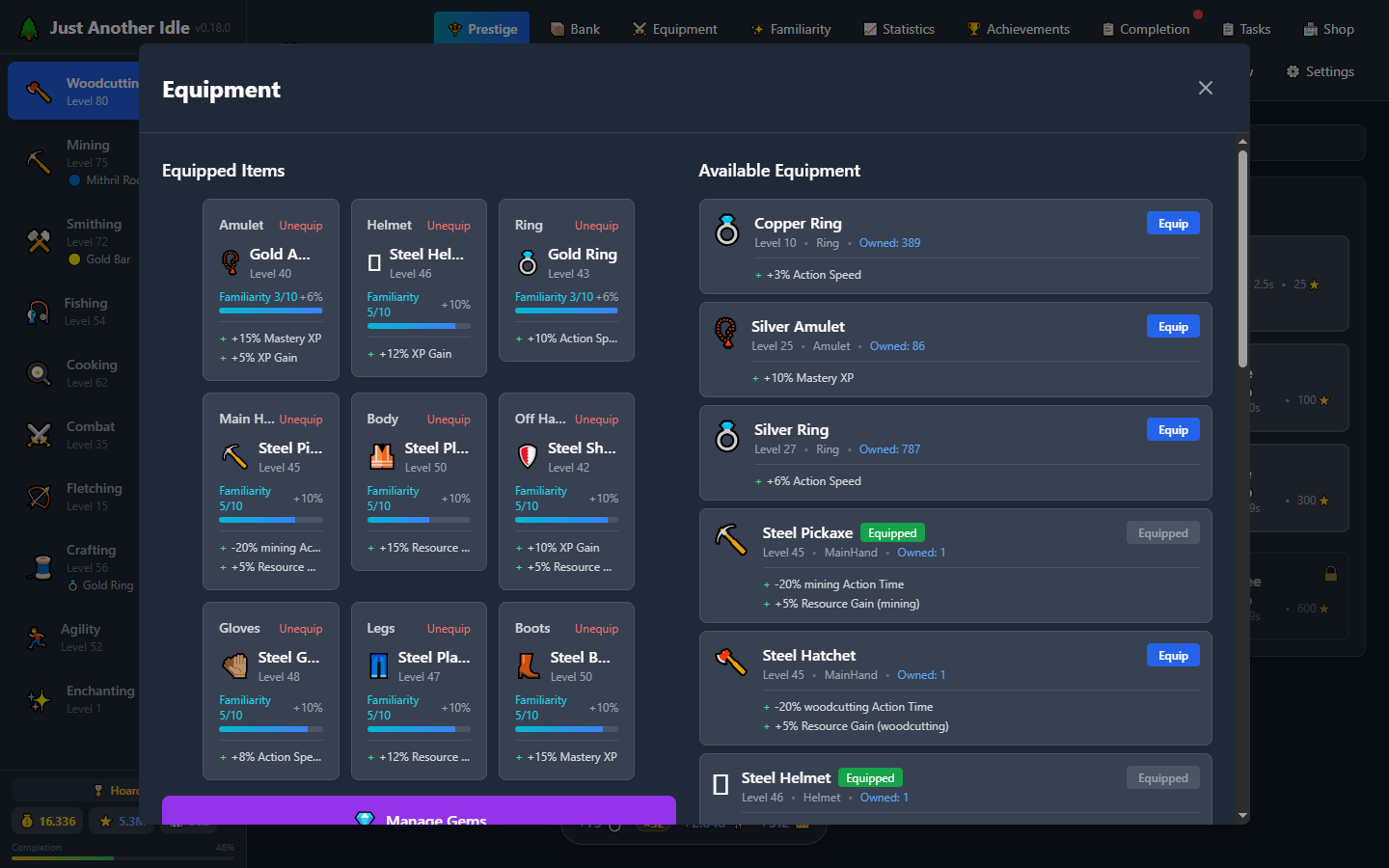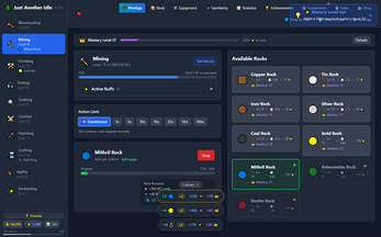 From Woodcutting and Mining to Combat, Enchanting, and Jewelry. Each skill offers unique challenges, rewards, and its own skill tree with powerful unlockable bonuses.