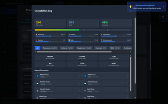 Complete actions to gain experience and level up. Each level unlocks new actions, equipment, and systems — the tutorial guides you as each one opens up.